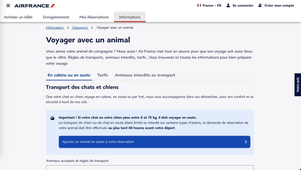 Quanto costa viaggiare con il proprio animale domestico con Air France?