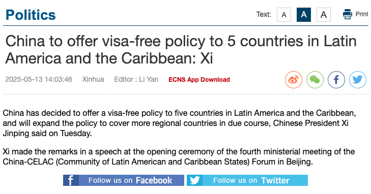 Avec ces ajouts, la Chine compte désormais 43 pays dont les citoyens peuvent entrer sans visa pour un séjour de 30 jours. Parmi eux figurent de nombreux pays européens (France, Allemagne, Italie, Espagne, etc.), plusieurs nations d’Asie-Pacifique (Australie, Japon, Malaisie…), ainsi que les nouveaux pays sud-américains.