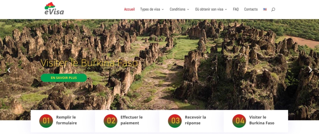 Le visa électronique ou e-Visa est une procédure obligatoire pour tous les voyageurs qui entrent au Burkina Faso, qu’ils soient éligibles ou même exemptés des frais de visa. Une demande de visa transit, court ou long séjour peut être formulée depuis la plateforme officielle des autorités.