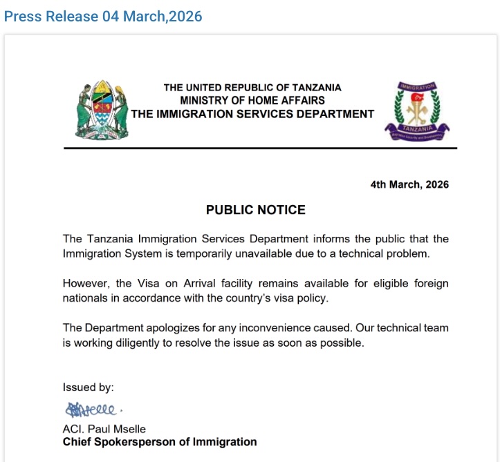 Les autorités tanzaniennes ont officiellement communiqué sur une interruption temporaire de leur système central d’immigration. Le site officiel des services d’immigration est actuellement inaccessible ou incapable de finaliser les traitements de dossiers en cours. Cette panne n’est pas une première. Ces derniers mois, nous constations déjà des délais de traitement allongés, avec des e-Visas délivrés après la date d’arrivée prévue par le voyageur.