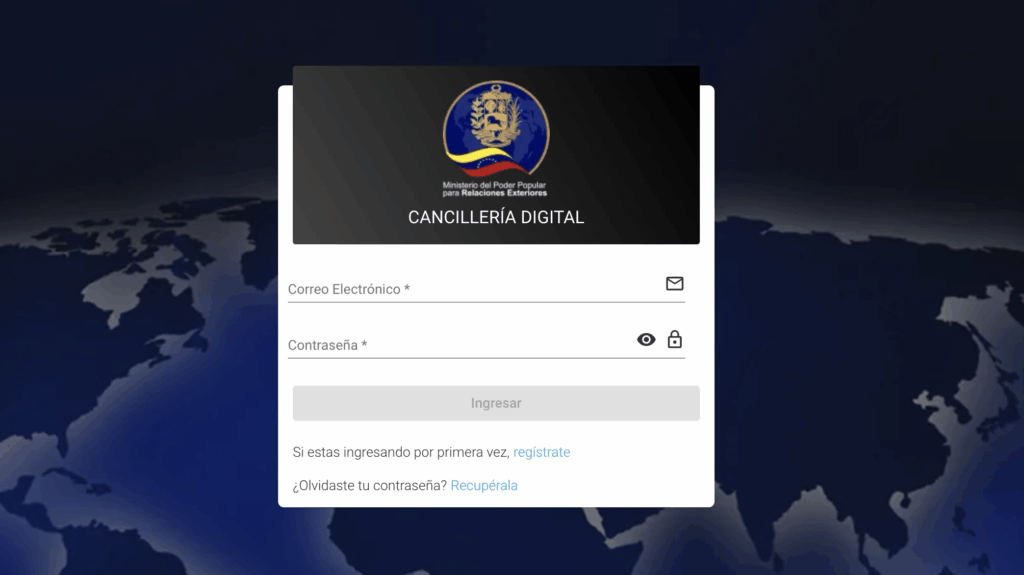 Le système est géré par le Ministerio del Poder Popular para Relaciones Exteriores (MPPRE), et non par le SAIME, qui reste l’autorité d’immigration interne. Tout passe par un seul portail : cancilleriadigital.mppre.gob.ve.