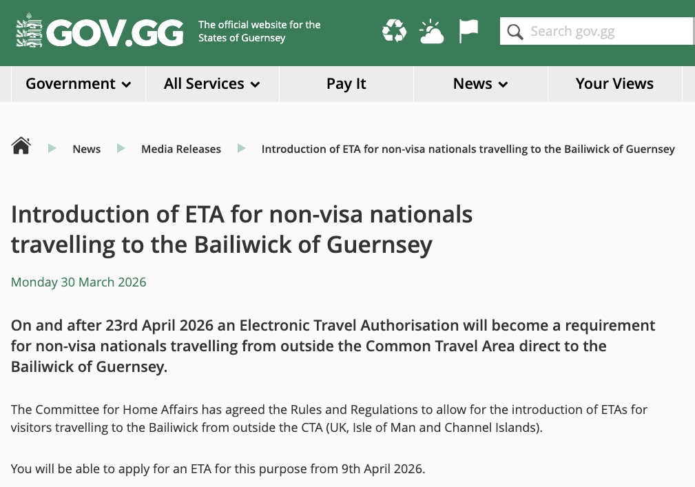 23 avril 2026 : L’ETA devient obligatoire pour tous les trajets directs (ferry ou avion) depuis l’étranger vers Jersey, Guernesey et l’Île de Man.