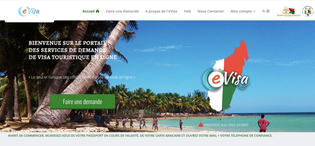 Das eVisa Madagaskar wird über das offizielle Portal beantragt, das vom Service du Tourisme, de l'Immigration et de l'Emigration der Republik Madagaskar verwaltet wird, oder über eine Agentur wie Visamundi.
