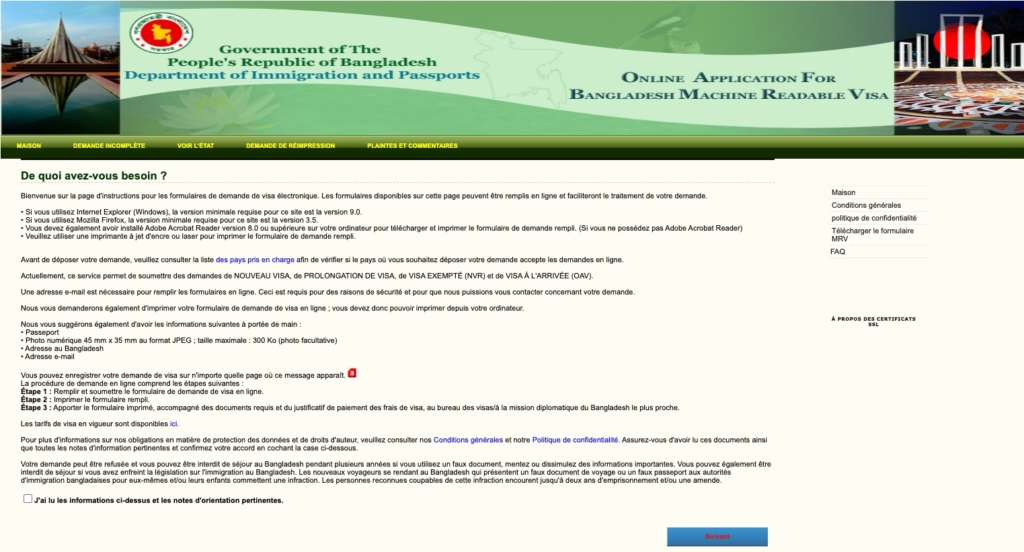 Via the official online platform from the Government of the People's Republic of Bangladesh โ Department of Immigration and Passports, several application services are available: New Visa, Visa Extension, Visa Waiver, and Visa on Arrival (VOA). All travelers must check their visa eligibility and Bangladesh's entry policy.
