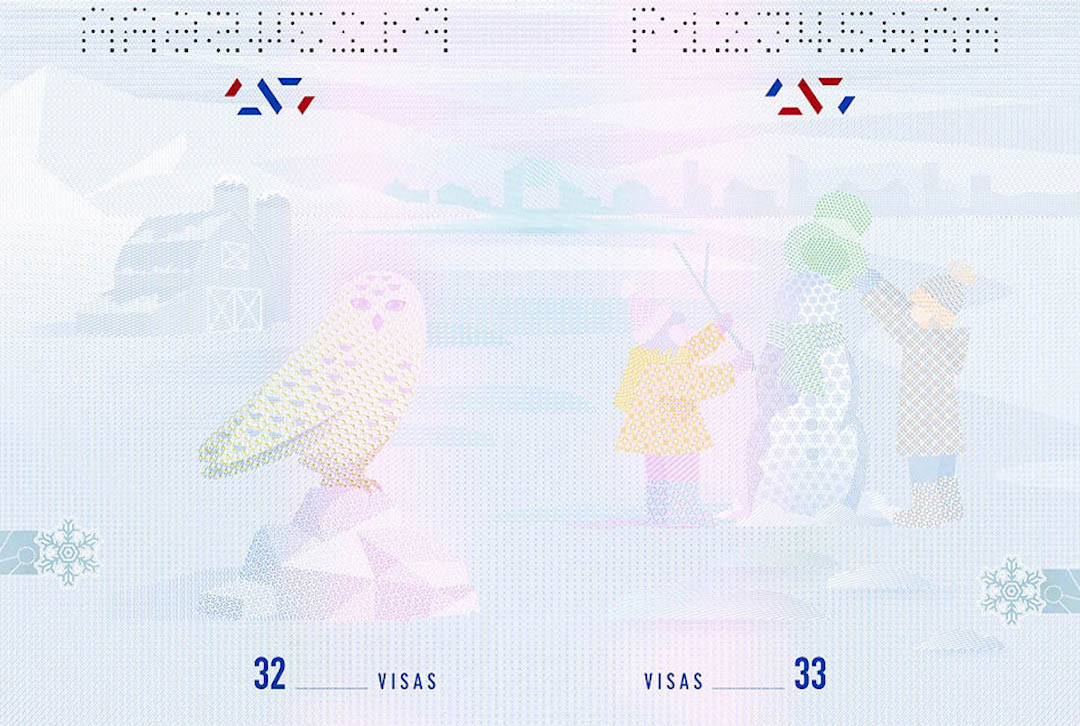 The designers also added a giant maple leaf to the cover, complementing the coat of arms previously featured on passport covers. The new booklet features advanced security features to better protect the identity of Canadians. A kinegram will be added to the passport's main photo to make life even more difficult for counterfeiters.