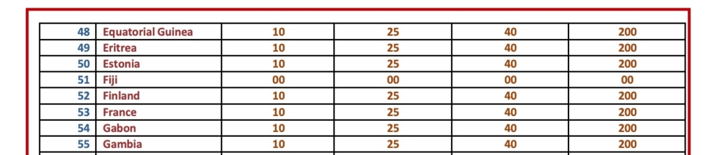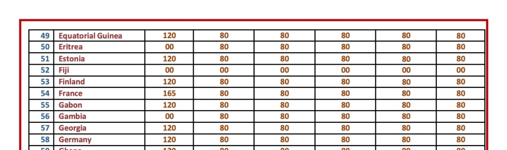 - The “Explosive” rates” : The record is held by the United Kingdom, whose citizens must pay USD 242 (205 €), and especially by the United Arab Emirates, with an astronomical price of $415 (352 €).