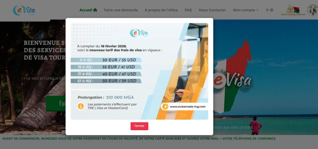 Since February 16, 2026, the price of an electronic visa (e-Visa) for a short stay (up to 15 days) in Madagascar has tripled, from โฌ10 to โฌ30. An unpleasant surprise for visiting tourists, although other lengths of stay have been spared for the time being.