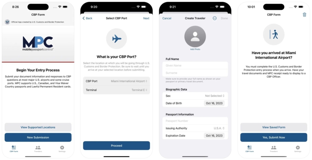 Después, cuando se disponga a viajar a Estados Unidos, deberá rellenar un formulario electrónico en la aplicación con información sobre su viaje, incluida la fecha de llegada, el aeropuerto de salida y el número de vuelo. También tendrás que responder a algunas preguntas sobre tu equipaje y declarar si llevas mercancías reguladas o sujetas a derechos arancelarios.