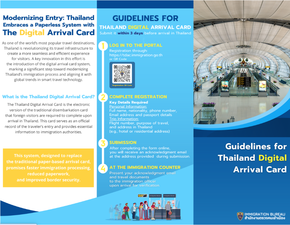 A partir de hoy, un En vigor nuevas formalidades de viaje para entrar en Tailandia. Todos los viajeros que lleguen por vía aérea, terrestre o marítima deberán cumplimentar el formulario electrónico (Tarjeta Digital de Llegada a Tailandia - TDAC).