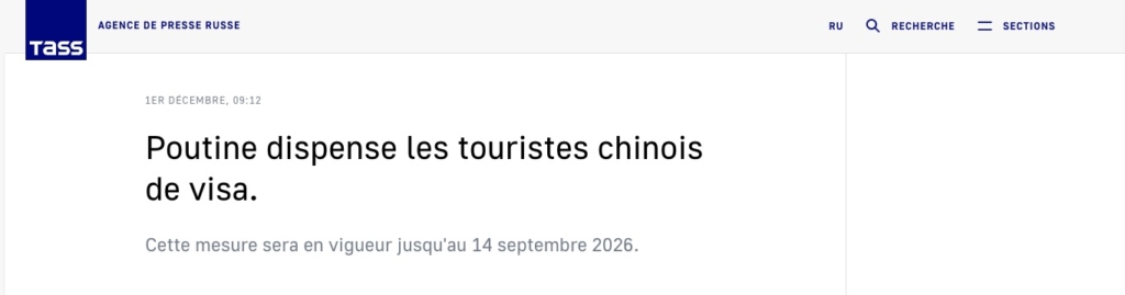 Esta decisión rusa se aplica de conformidad con el principio de reciprocidad. Por su parte, China había anunciado que iba a poner a prueba una política de exención de visados para los ciudadanos rusos titulares de pasaportes ordinarios.