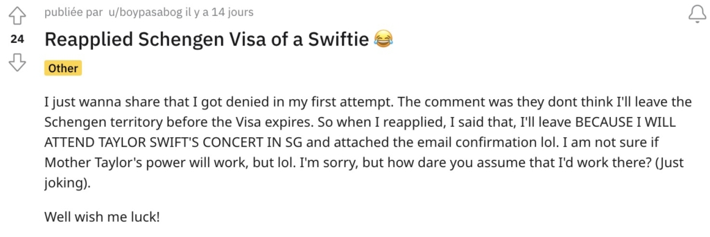 No desilusionado, respondió, adjuntando una copia de las (preciosas) entradas reservadas a su nombre para ver a Taylor Swift. en Singapur a principios de marzo, única parada de la cantante en el sudeste asiático. El precio medio de las entradas es de 300 dólares (257 €) que desaparecieron en cuestión de horas, esta elección sin duda pesó mucho a los funcionarios de inmigración.
