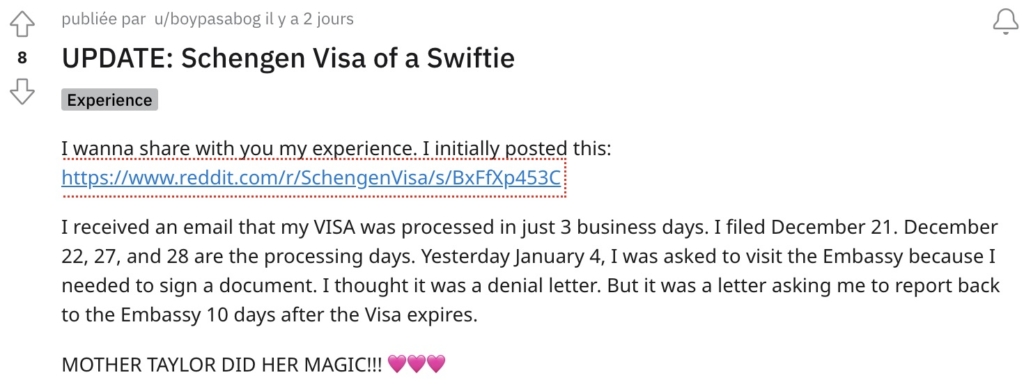 Al parecer, esto fue suficiente, ya que posteriormente se citó al viajero en la embajada para recoger el visado y dejar constancia de las condiciones en las que se había concedido. Compartió todas las etapas de su aventura en Reddit.