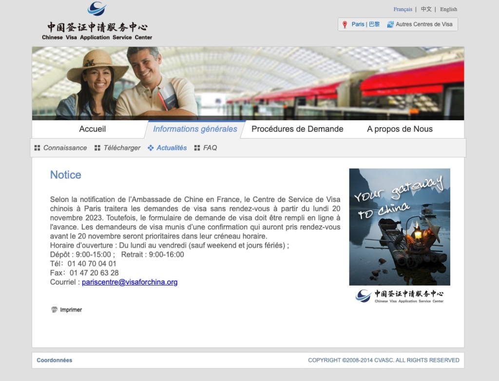 Tutti sognano di andare da qualche parte per cambiare scenario o semplicemente per rilassarsi. Uno dei Paesi più visitati dai turisti è la Cina. Se state pensando di recarvi in Cina, la procedura di richiesta del visto è appena diventata molto più semplice. Non è più necessario fissare un appuntamento per richiedere il visto presso il centro cinese di Parigi. Il centro accetta le domande di ammissione dal 20 novembre 2023.
