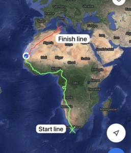 Dopo aver iniziato il suo viaggio il 22 aprile nel punto più meridionale del Sudafrica, Russell Cook ha già percorso quasi 12.000 km attraverso 13 Paesi diversi. Tuttavia, dopo 278 giorni di viaggio sulle strade africane, si è scontrato con difficoltà nell'ottenere un visto per proseguire il viaggio, in particolare per attraversare il confine tra Mauritania e Algeria.