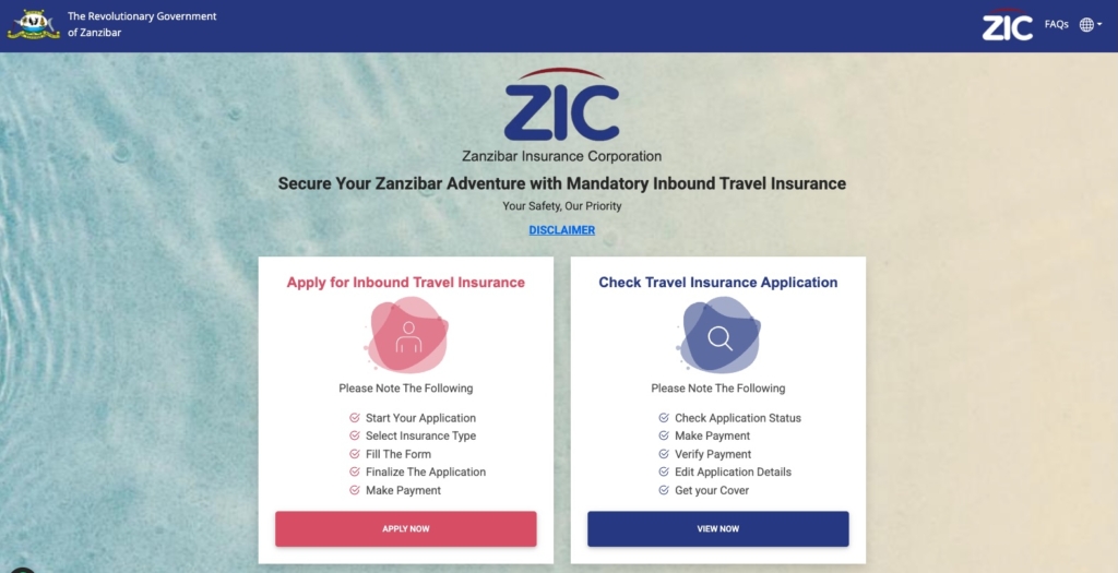 Dal 2024, Zanzibar impone un assicurazione medica obbligatoriaper tutti i viaggiatori dell'arcipelago. Il costo può variare a seconda dell'età del viaggiatore. Per i bambini può essere gratuito, ma gli adolescenti dovranno pagare 22 dollari USA, 19 €) e adulti (44 dollari USA), 38 €). Le domande possono essere presentate sul sito web ufficiale delle autorità. visitzanzibar.go.tz/.